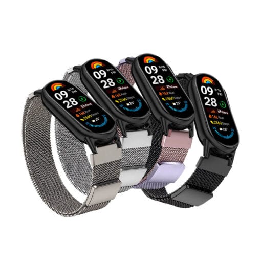 Correa metálica de 14mm para Xiaomi Smart Band 9, con ajuste magnético y diseño de malla milanesa en acero inoxidable. Disponible en 4 colores premium.